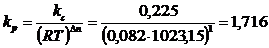 Calcoliamo ora la Kp usando la relazione che lega le due costanti Kc = Kp / (RT)Δn
