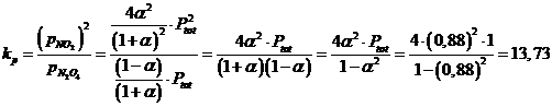 A 373,15 K e P = 1 atm l'ipoazotide è dissociata all'88%. Calcolare Kp per l'equilibrio di dissociazione N2O4 = 2NO2