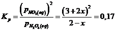 Utilizziamo ora i valori delle pressioni di equilibrio, espresse in funzione di x, all'interno delle legge di azione di massa