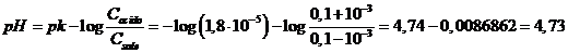 Tampone 1 - 0,1 M in acido acetico (Ka = 1,8 10-5) e 0,1 M in acetato di sodio (Ca/Cs = 0.1/0.1)