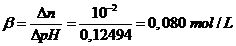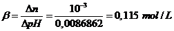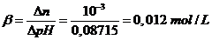Poiché l'aggiunta di 10-3 moli per litro di soluzione hanno fatto variare il pH di 0,0086862, la capacità tampone è