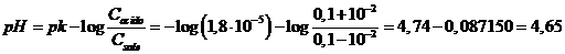 Poiché l'aggiunta di 10-2 moli per litro di soluzione hanno fatto variare il pH di 0,60206 - 0,47712 = 0,12494 punti, la capacità tampone nei confronti dell'aggiunta di un acido è