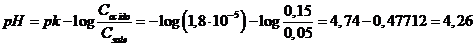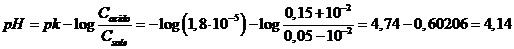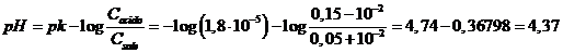 Tampone 2 - 0,15 M in acido acetico (Ka = 1,8 10-5) e 0,05 M in acetato di sodio (Ca/Cs = 0.15/0.05)