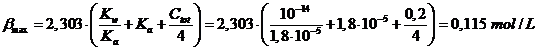 La capacità tampone b può essere calcolata in modo preciso tramite la seguente relazione