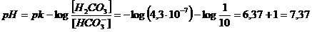 Il sangue umano è una soluzione tamponata a pH 7,4. Tra i diversi sistemi tampone presenti nel sangue, il più importante è quello costituito dall'acido carbonico (che si produce dalla reazione dell'anidride carbonica respiratoria con l'acqua) e dallo ione bicarbonato (H2CO3/HCO3-). In effetti lo ione bicarbonato presenta una concentrazione plasmatica circa 10 volte superiore di quella dell'acido carbonico. Il tampone plasmatico H2CO3/HCO3- è quindi lontano dalle condizioni di maggior efficienza. La maggior concentrazione di ioni bicarbonato permette però al sangue di tamponare più facilmente sostanze acide, che rappresentano i principali cataboliti versati nel sangue (acido lattico, acidi urici etc).