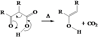 La decarbonilazione dei b-chetoacidi o degli acidi b-dicarbossilici è una reazione termica che avviene attraverso un meccanismo concertato.