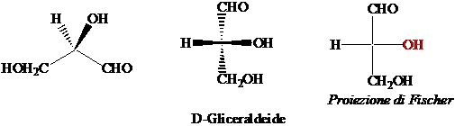La Gliceraldeide è lo zucchero più semplice. Dei due possibili stereoisomeri d e l esiste in natura solo l'enantiomero d, che corrisponde alla configurazione R dell'atomo di carboniuo asimmetrico. Per ragioni storiche l'enantiomero di configurazione R viene chiamato D-gliceraldeide