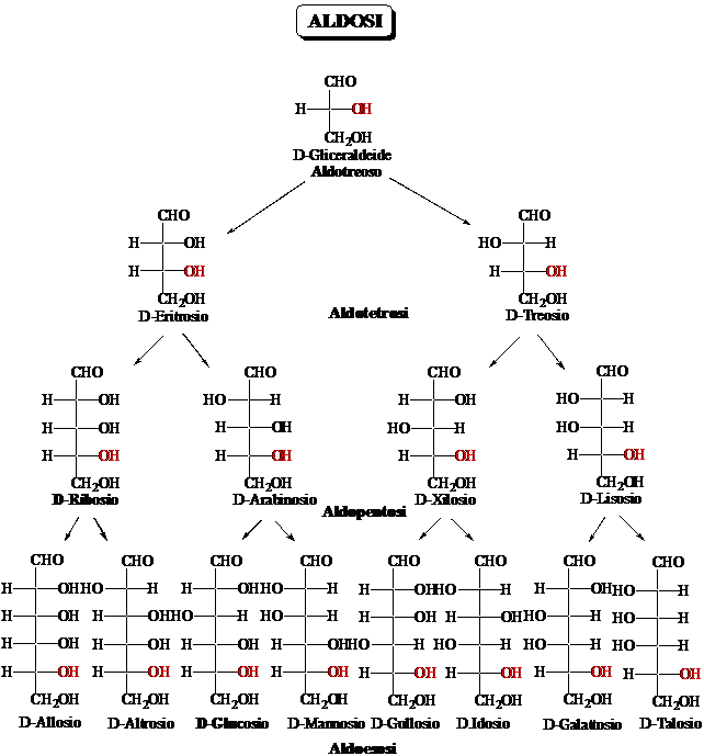Gli zuccheri vengono sintetizzati partendo dalla D-glceraldeide per allungamento della catena tra il carbonile e il carbonio asimmetrico, conservando quindi la configurazione R su questo atomo. Ne deriva che tutti gli zuccheri naturali appartengono alla serie D. Ovviamente, questo non significa che tutti gli zuccheri siano destrogiri. Non esiste infatti nessuna relazione diretta tra configurazione e senso di rotazione del piano della luce polarizzata.