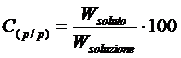 E' il rapporto percentuale tra il peso del soluto ed il peso della soluzione (grammi di soluto per 100 g di soluzione)