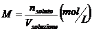 E' il rapporto tra il numero di moli di soluto ed il volume della soluzione espresso in litri. Indica il numero di moli di soluto presenti in un litro di soluzione (mol/L).