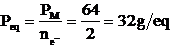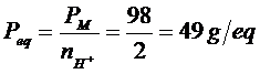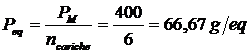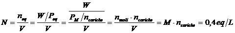 Ora, allo stesso modo in cui si calcola il numero di moli (n) facendo il rapporto tra il peso in grammi (W) ed il peso di una mole (PM), si può calcolare il numero di equivalenti (neq) facendo il rapporto tra il peso in grammi di una sostanza ed il peso di un equivalente (Peq).
