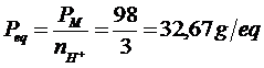 Nella seconda in cui si liberano 3 ioni H+ il peso equivalente vale
