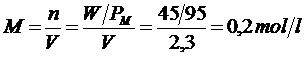 Per esemplificare quanto detto calcoliamo la Molarità e la Normalità di 2,3 L di una soluzione contenente 45 g di Cloruro di Magnesio MgCl2.