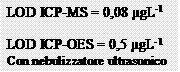 L'ICP-MS risulta la tecnica di elezione per la ricerca di elementi in tracce ed ultratracce grazie alla sua maggiore sensibilità. Il criterio di validazione dei dati analizzati con le due metodiche si basa sul confronto dei limiti di rivelabilità (LOD), come mostrato in tabella 9: