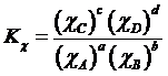 È infine possibile esprimere la costante di equilibrio in funzione delle frazioni molari (tipicamente per equilibri in fase gassosa). La costante che si ottiene è detta Kχ (kappa-chi).