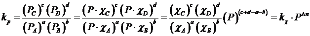 Ricordando che per la legge di Dalton delle miscele gassose, la pressione parziale è uguale alla pressione totale per la frazione molare (pi = pt χi), è semplice verificare che tra Kχ e Kp esiste la seguente relazione