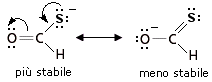 La struttura più stabile per l'anione S-metantioato è quella di sinistra poiché la carica negativa è portata dallo Zolfo che, pur essendo meno elettronegativo dell'Ossigeno, presenta dimensioni atomiche maggiori.