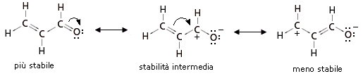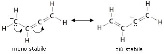 Infine le cariche negative sono meglio sopportate da atomi in cui l'ibridazione ha un maggior carattere s. Un'orbitale sp, avendo un 50 % di carattere s, tiene gli elettroni più vicini al nucleo di un orbitale sp2 (33% di carattere s) o di un orbitale sp3 (25% di carattere s). Nell'esempio seguente la struttura più stabile è quella di destra