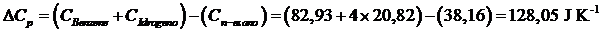 Calcoliamo la differenza tra le capacità termiche dei prodotti e dei reagenti