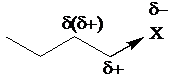La polarizzazione del legame C-X (X = N, O, S, F, Cl, Br, I) induce la formazione di una parziale carica positiva sull'atomo di carbonio, che assume carattere elettrofilo. Il carbonio parzialmente positivo induce a sua volta un (molto) debole effetto +I sull'atomo di carbonio vicinale: l'effetto induttivo si spegne rapidamente lungo la catena di atomi di carbonio.