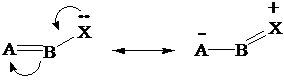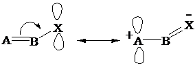 L'atomo X esercita un effetto mesomero elettron-donatore (+M) sul sistema p A=B.