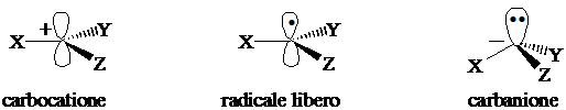 I sostituenti X, Y, Z possono essere H o qualsiasi gruppo R. A seconda della natura di X, Y, Z i radicali, carbocationi e carbanioni si definiscono primari, secondari o terziari