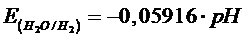 Come abbiamo già visto in precedenza, l'equazione di Nernst fornisce il medesimo potenziale per le coppie redox H+/H2 e H2O/H2 in funzione del pH.