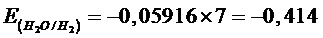 Anche in questo caso, per concentrazioni di ioni H+ molto piccole (pH ≥ 7) l'eventuale formazione di H2 appare difficilmente spiegabile in base alla sola scarica degli ioni H+. Si preferisce in tal caso considerare la semireazione di riduzione dell'acqua (equivalente a quella di riduzione degli ioni H+), la cui semireazione di riduzione ed il relativo potenziale sono