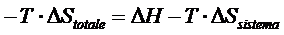 Il prodotto -T.DStotale viene definito come variazione di una nuova funzione di stato, chiamata Energia libera G (da Gibbs, lo scienziato americano che per primo ne propose l'introduzione)
