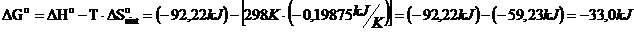 DG° = S DG°prodotti) - S DG°reagenti) = [(- 604,03) + (- 394,36)] - (- 1128,8) = + 130,41 kJ