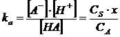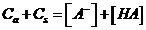 la quarta si ricava infine dal bilancio di massa. Ricordando che l'acido indissociato HA ed il suo anione A- provengono completamente dalla dissociazione di Ca mol/L iniziali di acido e Cs mol/L iniziali di sale, potremo quindi scrivere