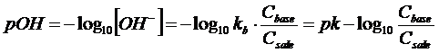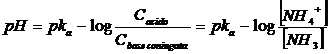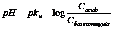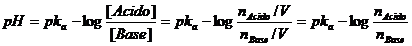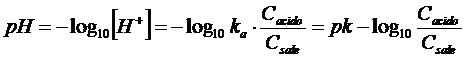 Calcolando il logaritmo negativo di entrambi i membri otteniamo finalmente la relazione approssimata per il calcolo del pH in soluzioni tampone (equazione di Henderson-Hasselbach)