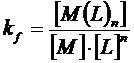 La posizione del punto di equilibrio di questa reazione dipende dal valore della costante di equilibrio che è chiamata costante di formazione kf (o costante di stabilità kstab) del complesso.