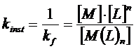 Il reciproco della costante di formazione descrive ovviamente l'equilibrio opposto ed è nota come costante di instabilità kinst.