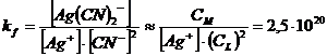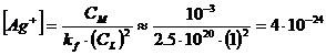 Ag(CN)2-]eq ≈ [Ag+]eq = CM = 10-3 M