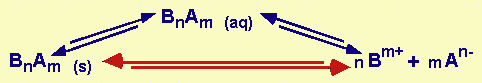 Se consideriamo un sale generico BnAm e ricordando che (s) significa solido, (aq) significa in soluzione acquosa, si possono individuare gli equilibri indicati in figura: