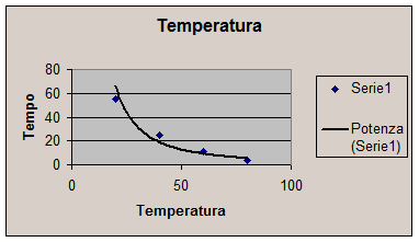 Il grafico ottenuto mostra chiaramente un iperbole:ciò sta indicare che la temperatura è inversamente proporzionale al tempo,più la temperatura è alta e minore sarà il tempo di decolorazione.