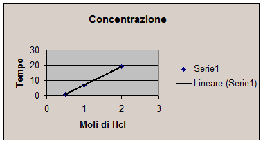 In questo caso invece otteniamo una retta,questo indica che la concentrazione è direttamente proporzionale alla velocità di reazione.