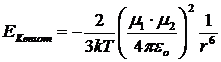 Per due dipoli liberi di ruotare (liquido o aeriforme) di momento 1ed2 a distanza r l'energia di Keesom è
