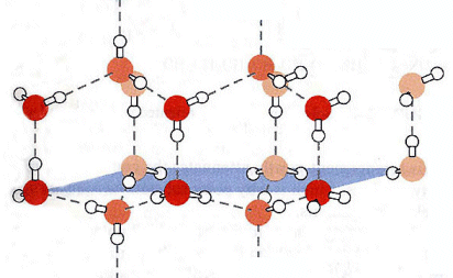 La presenza del legame a idrogeno spiega anche perchè il ghiaccio sia meno denso dell'acqua. Infatti quando l'acqua si solidifica i legami a idrogeno tendono a bloccare le molecole in una struttura esagonale ordinata che risulta meno densa della struttura disordinata caratteristica dell'acqua liquida.