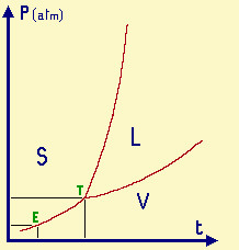 Il punto triplo T è caratterizzato da una unica coppia di valori per p e per t: 4,58 mm Hg e 0,01°C.