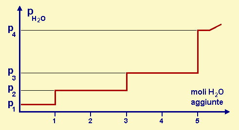 La p di H2O cresce fino a p1; ora la p rimane costante finché tutto il CuSO4 si è trasformato in CuSO4H2O.