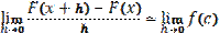 al tendere a 0 di h, il punto c che è interno all'intervallo