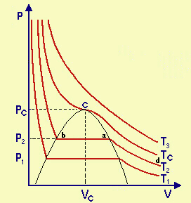 Questa TC è chiamata temperatura critica del gas e sopra di essa non è possibile liquefare il gas, qualunque sia la P che si impone: il gas resta perciò sempre nel suo stato gassoso; sotto la campana la sostanza invece esiste come liquido e come vapore.