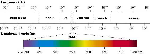 Le onde con lunghezza d'onda inferiore sono classificate come ultravioletto, raggi X, raggi gamma.