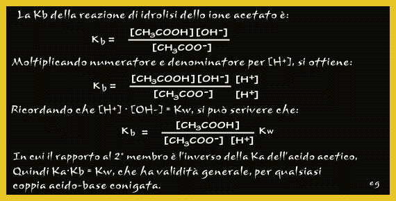 L'unico appunto da fare è che in questo caso la Kb si definisce costante di idrolisi del sale e, generalmente, si indica con Ki.