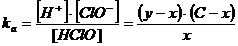 x = la quantità di anione ipoclorito che si riassocia rubando x mol/L di ioni H+ per formare x mol/L di acido indissociato