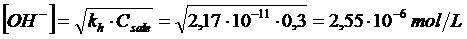 [H+] = kw/ [OH-] = 3,92.10-9 mol/L pH = 8,4