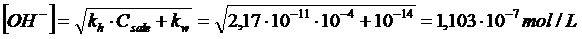 L'entità di tale processo è comunque minima e non influisce sulla concentrazione degli ioni OH- la quale è determinata essenzialmente dall'equilibrio dell'acido che si riassocia. Diviene necessario tener conto anche dell'equilibrio dell'acqua solo quando il sale è molto diluito.