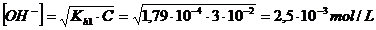 x = [OH-]= [HNO2] = 2,55.10-6 mol/L